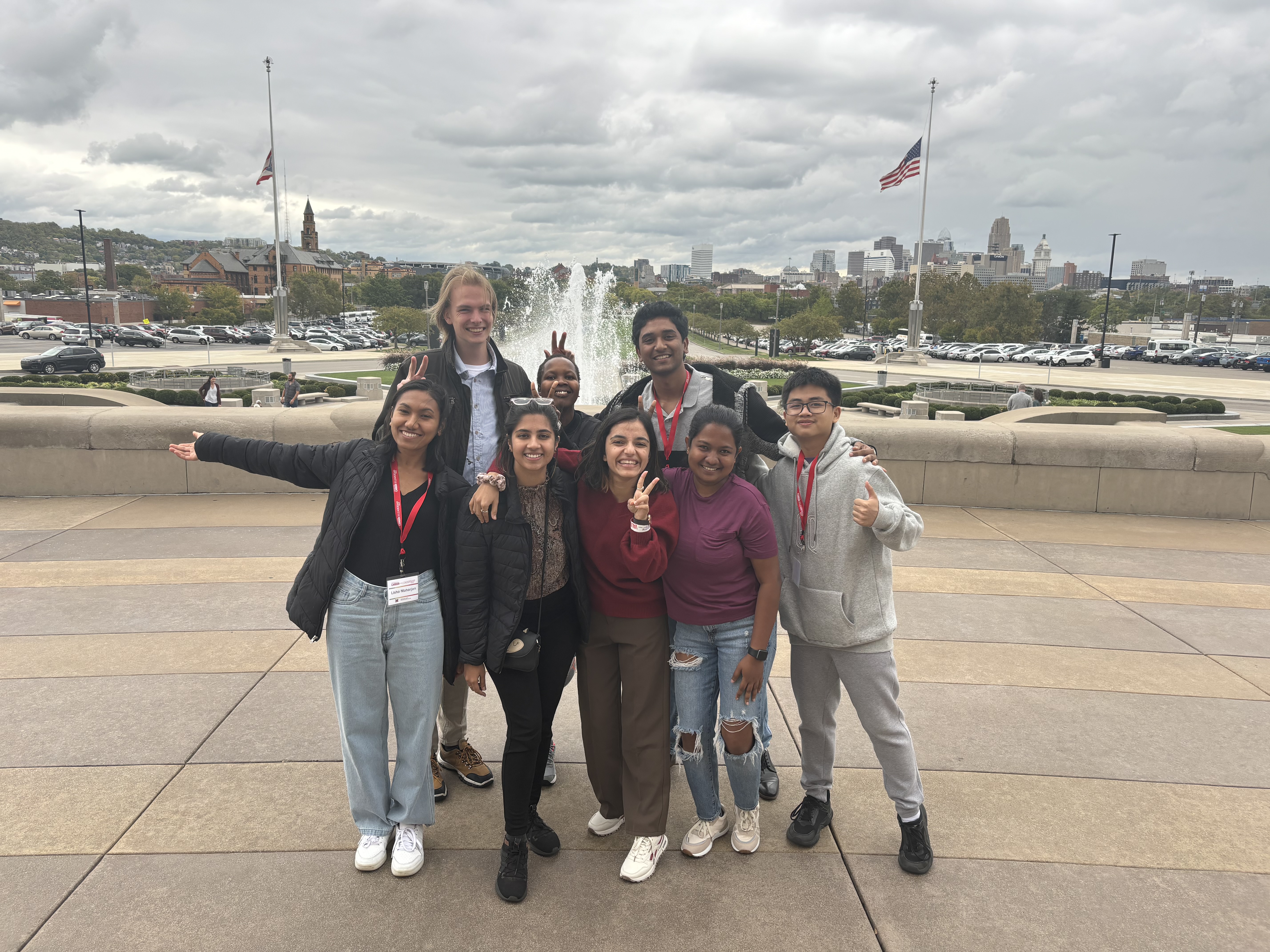 Gowtham Raj (back row) poses with friends on an excursion in Cincinnati. He said his time as a Miami University graduate student has been “the best two years of my life.”