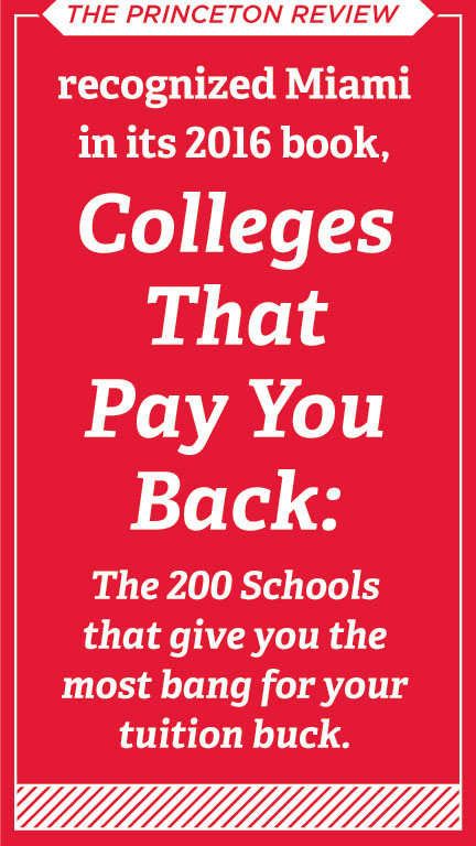 Miami is one of 200 schools that the education services company profiles in its just-published 2016 edition of Colleges That Pay You Back: The 200 Schools That Give You the Best Bang for Your Tuition Buck.